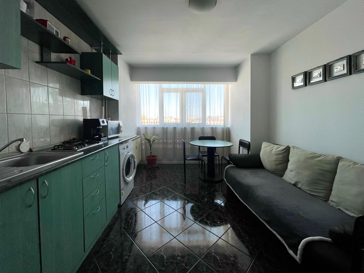 ofer inchiriere gars. dubla, 45 mp utili, bdul Unirii nr. 57, bloc 1991, intrare stradal, vedere spate, et. 6/ 9, mobilat, utilat. Dormitor separat cu pat matrimonial 1,60/ 2 m si separat living cu bucatarie open.