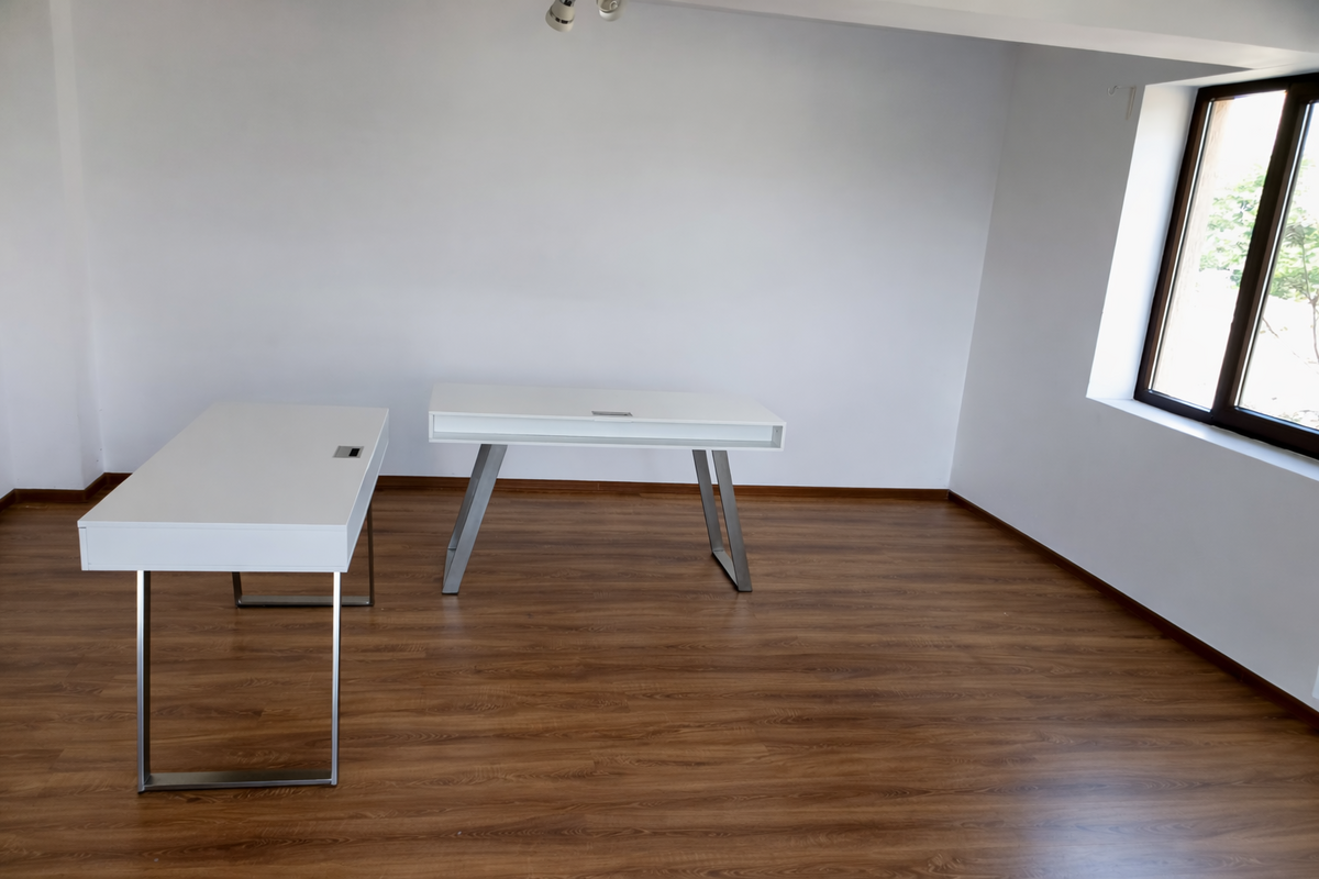Masa de birou cu blat mare lucios, 3 sertare si spatiu pentru cabluri - in stare foarte buna. Sunt disponibile 2 bucati in stoc. Pretul afisat este per bucata. Pretul se poate negocia pentru achizitia celor 2 bucati disponibile.