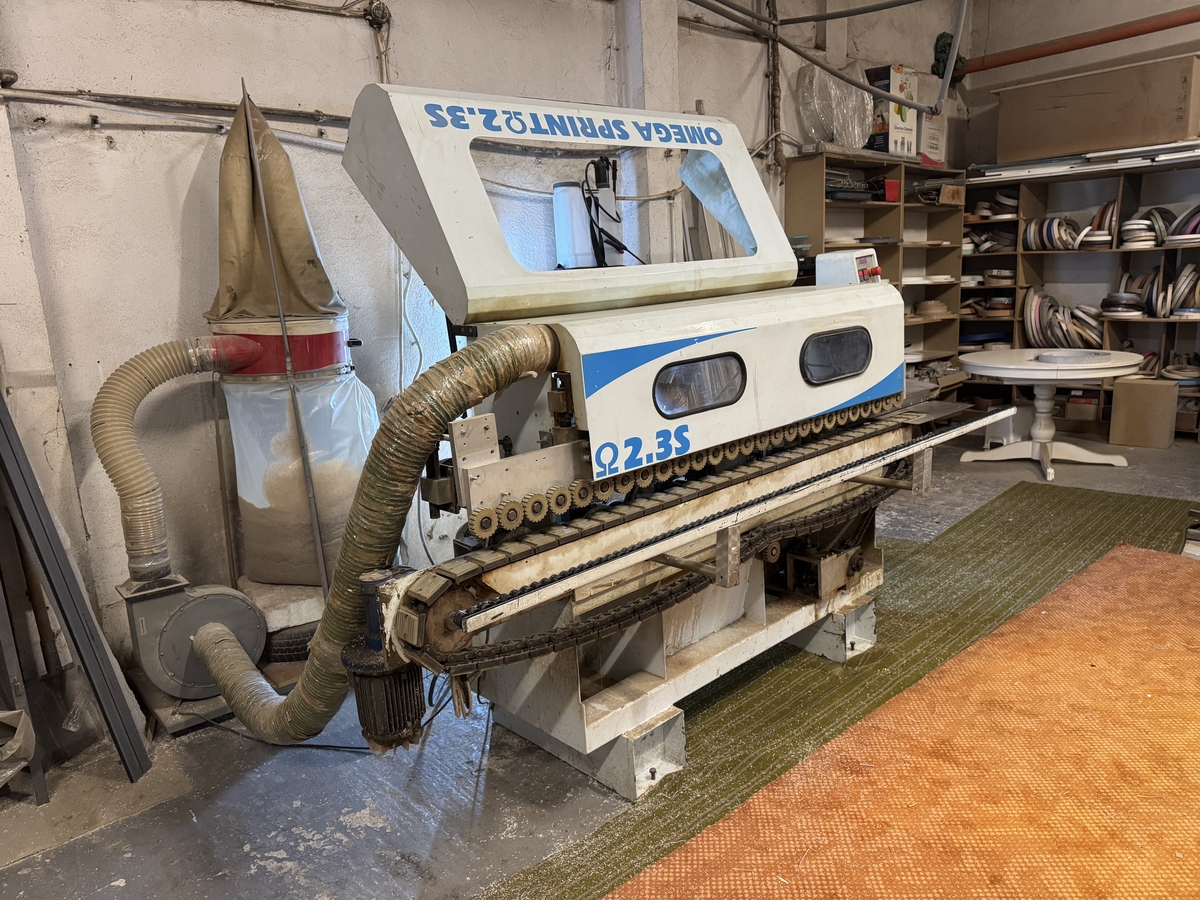Fabricatie 2005. Functionala DAR necesita revizie de curatare rezervor adeziv. A acumulat minzerie si blocheaza rola de adezivare. Cutitele de taiat cantul sunt reglate sa lase cantul o idee mai mare sa nu atinga palul. Cu o revizie si un reglaj se poate aplica cant o perioada lunga de timp.
