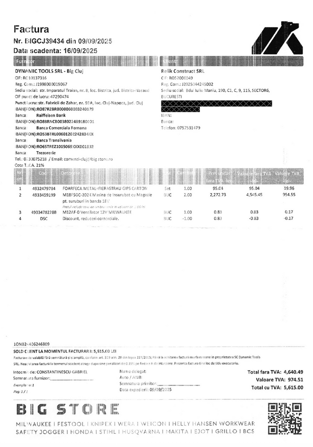 Mentionez ca ambele scule sunt noi, le-am achizitionat pentru o lucrare, insa nu am mai reusit sa le folosesc. Fiecare cutie vine cu cate 2 acumulatori. Au garantie extinsa. Se pot da si separat, costul fiind de 2500 lei/buc.