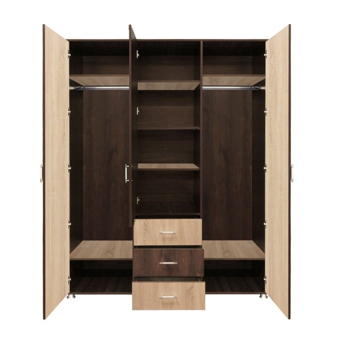 Vand dormitor Anda, complet, in stare excelenta, ideal pentru un spatiu modern si bine organizat. Mobilierul este realizat din PAL de calitate, cu finisaje in doua nuante elegante de stejar si wenge, care se potrivesc perfect in orice decor.