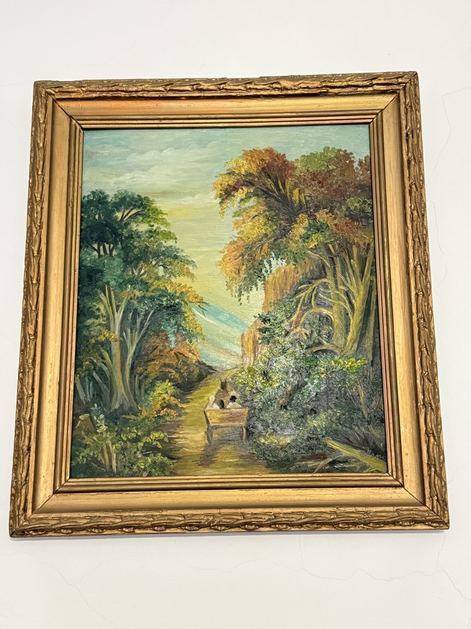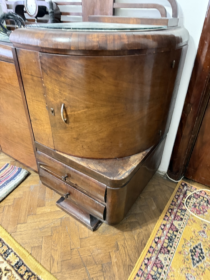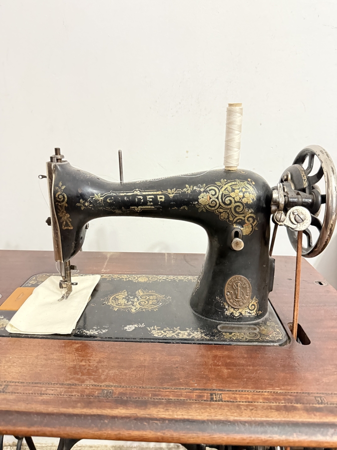mobila veche din ani 1930, masina de cusut Singer cu piese de schimb, 2 fotolii,2 aplice, tablouri....