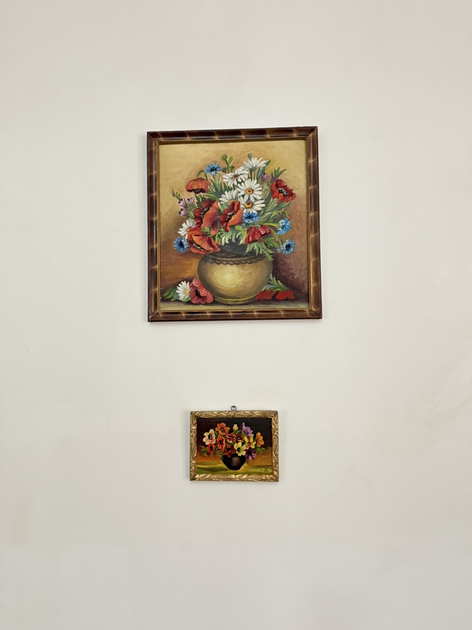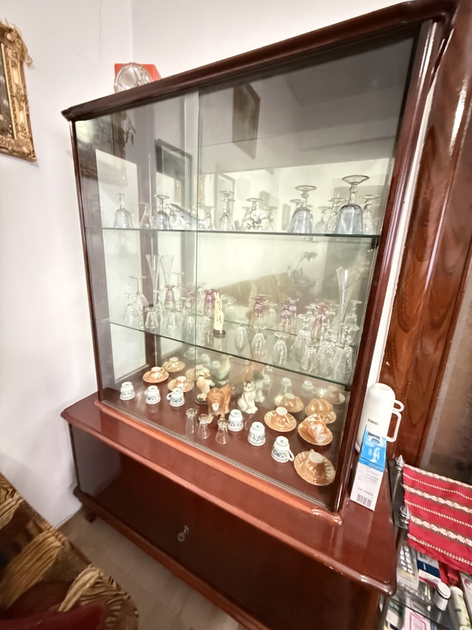 Mobila veche, tablouri, masina de cusut Singer, 2 fotolii, 2 aplice.