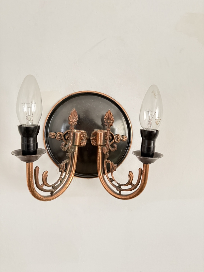 Mobila veche, tablouri, masina de cusut Singer, 2 fotolii, 2 aplice