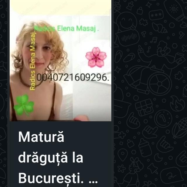 Eu ma consider fata serioasa responsabila si empatica. Dumneavoastra aveti parte de respect si observati igiena, liniste, discretie, va veti bucura de servicii excelente in compania mea. Dispun de cateva calorifere si e cald, va, simtiti bine primit. Pentru mai multe detalii, hai sa vorbim la telefon si pe Whasap Instagram, eu sunt elena. radics. masaj. Seara buna;