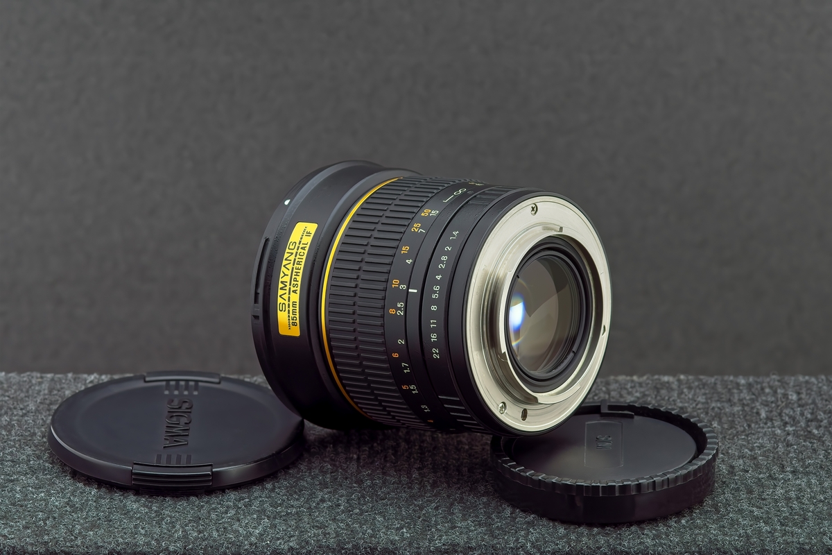 Obiectiv manual full frame Samyang 85mm f1.4 montura Sony A, stare excelenta, capace fata-spate.