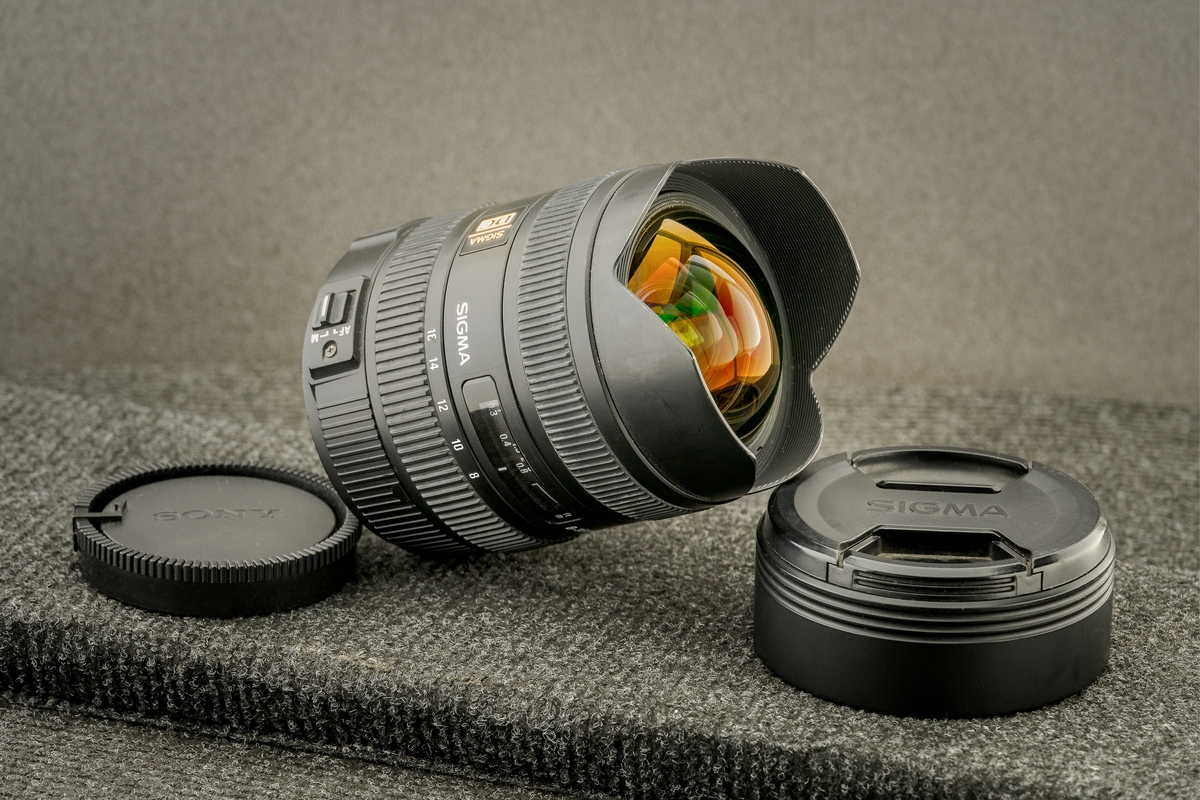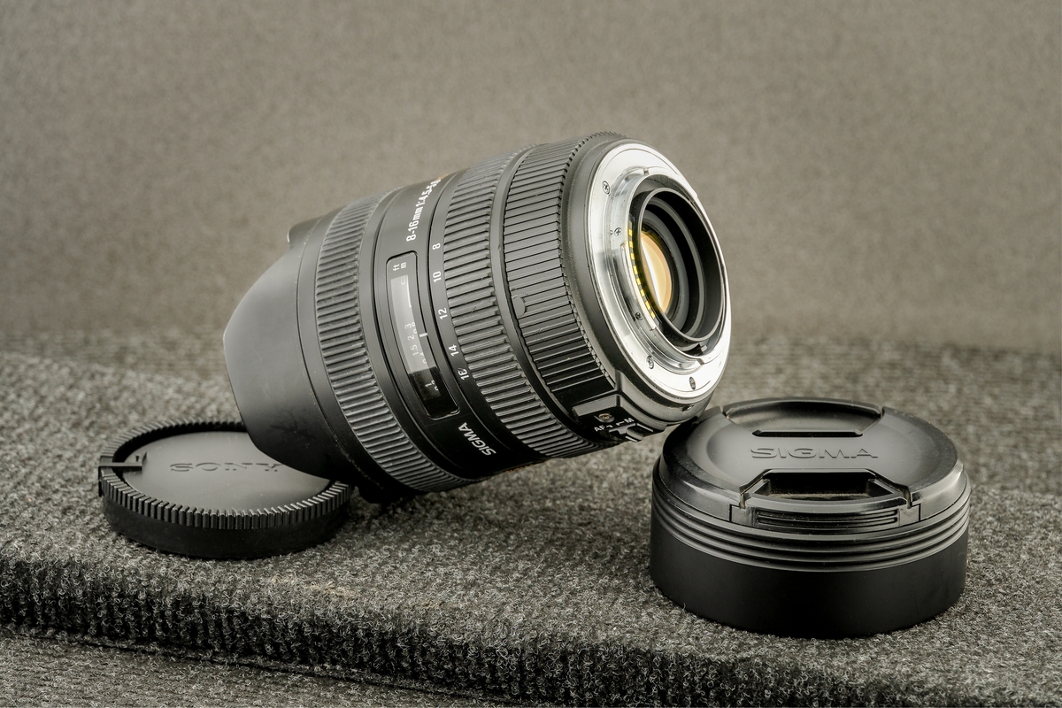 Obiectiv Sigma 8-16mm f4.5-5.6, montura Sony A, urme normale de utilizare, functionare perfecta, capace fata-spate.