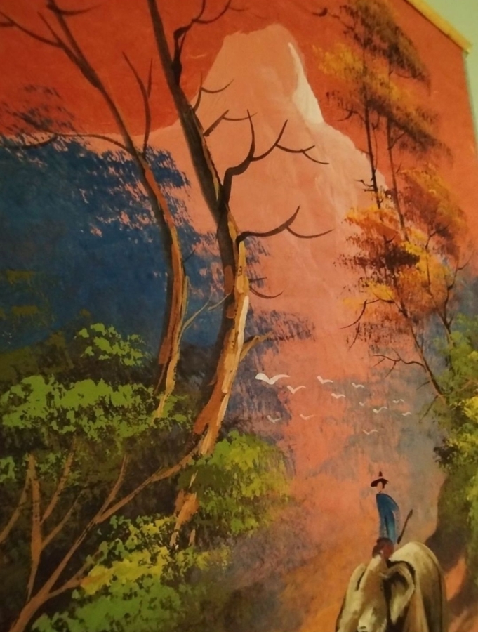 Pictura in acrilic unicat din Cambodgia, pe papirus decorativ sintetic (celuloza presata cu adaos de fibre sintetice).