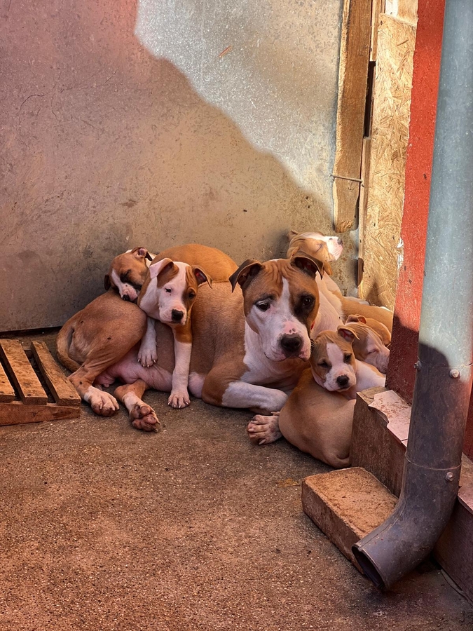 Catei Amstaf cu varsta de 9 saptamani, vaccinati si deparazitati, carnet de sanatate, detin ambii parinti. Pentru mai multe detalii, rog contactati.