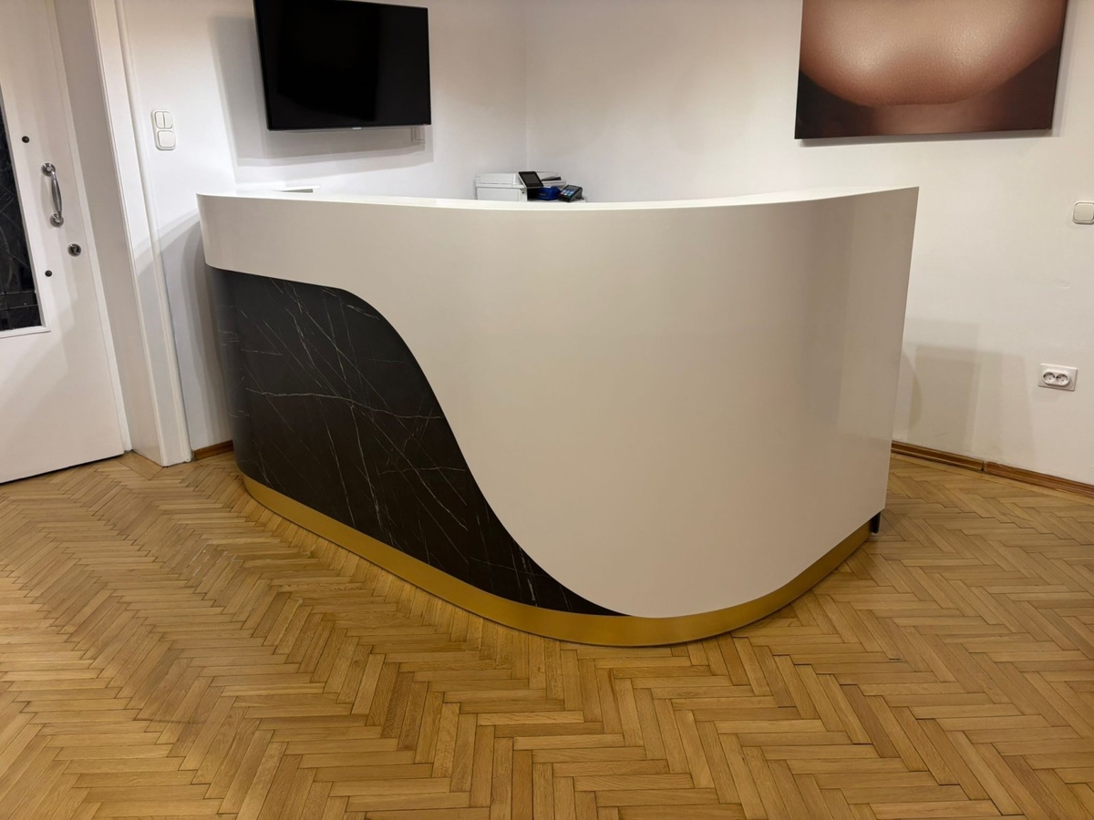 Producatori de mobilier pentru receptie hotel sau clinica medicala, cabinet medical realizat din Corian sau Hi macs.