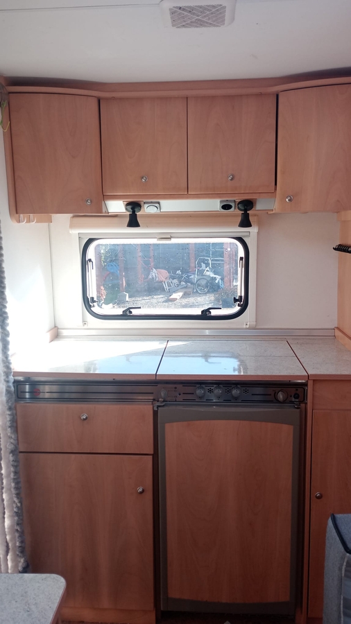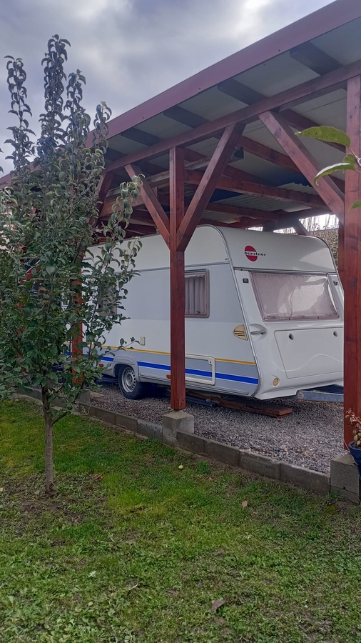 Cort mare + terasa, butelie gaz, baterie cu Gel 100A, cala nivelare roata,