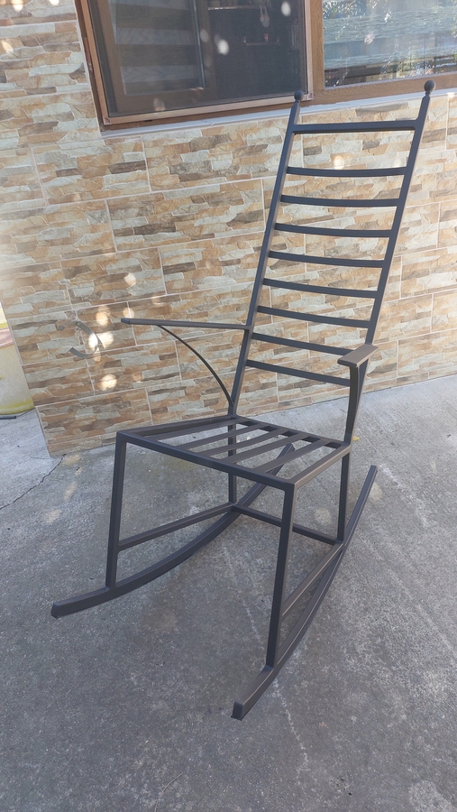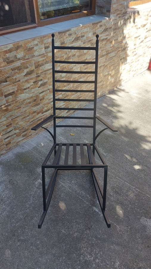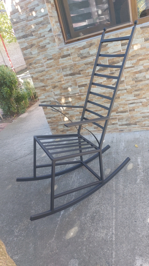 Scaun balansoar metalic din teava rectangulara de 20x20x1,5mm si platbanda de 20x3mm, suduri finisate fara imbinari mecanice.