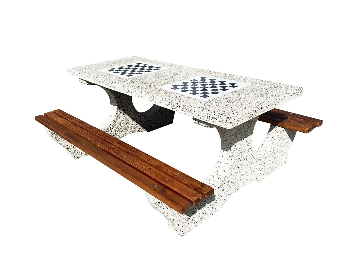 Masa fabricata din beton si piatra de marmura are o rezistenta ridicata la conditii meteorologice nefavorabile si la vandalism.
