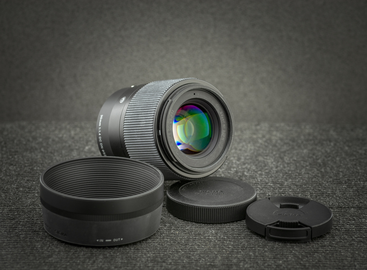 Sigma 30mm f1.4 DC DN C cu capace si parasolar