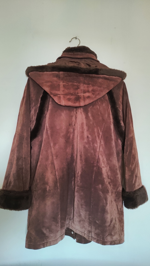 Vand haina din piele intoarsa cu gluga, pentru dame