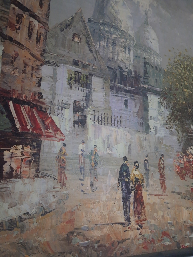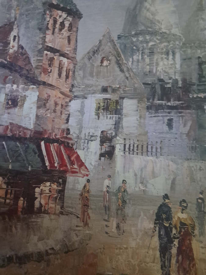 Tabloul reprezinta strada Montmartr din Paris si catedrala Sacre Coeur