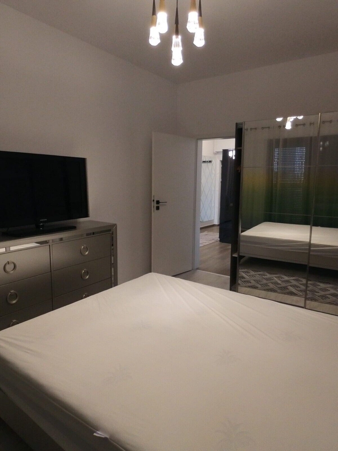 Cele 2 camere sunt decomandate si de asemenea mobilate. Iesirea catre balconul generos se face din living.