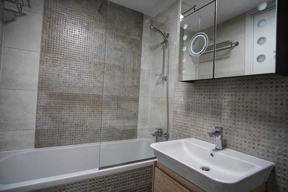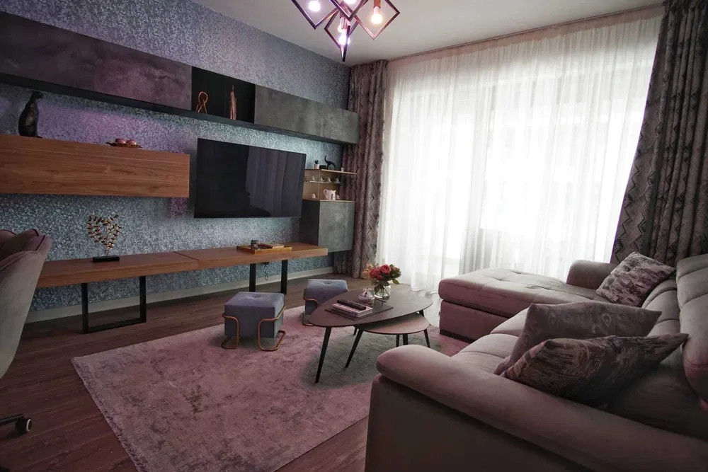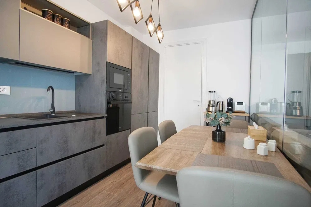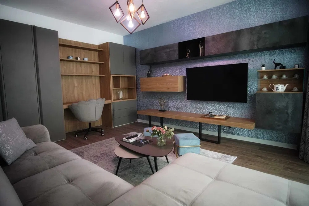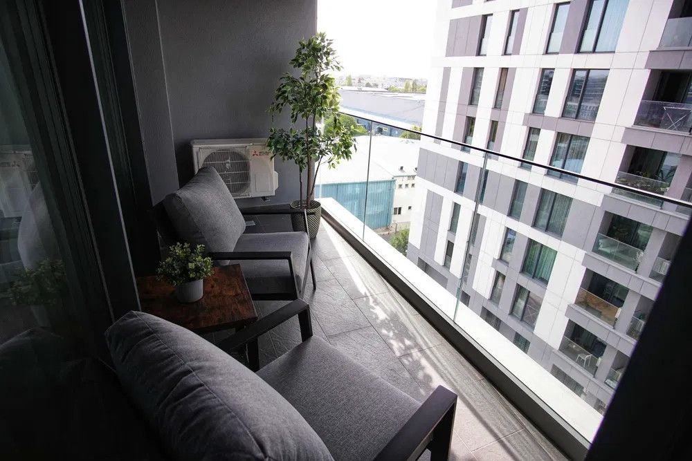 Apartamentul este compus dintr-un living mare delimitat printr-un perete de sticla de bucatarie , un dormitor spatios si luminos, o baie cu finisaje moderne si un balcon generos tip logie.Apartamentul se vinde mobilat complet.