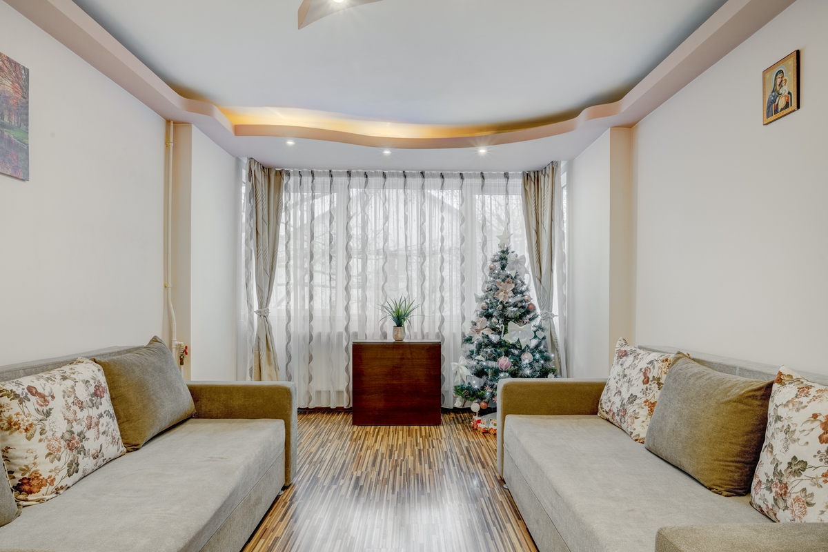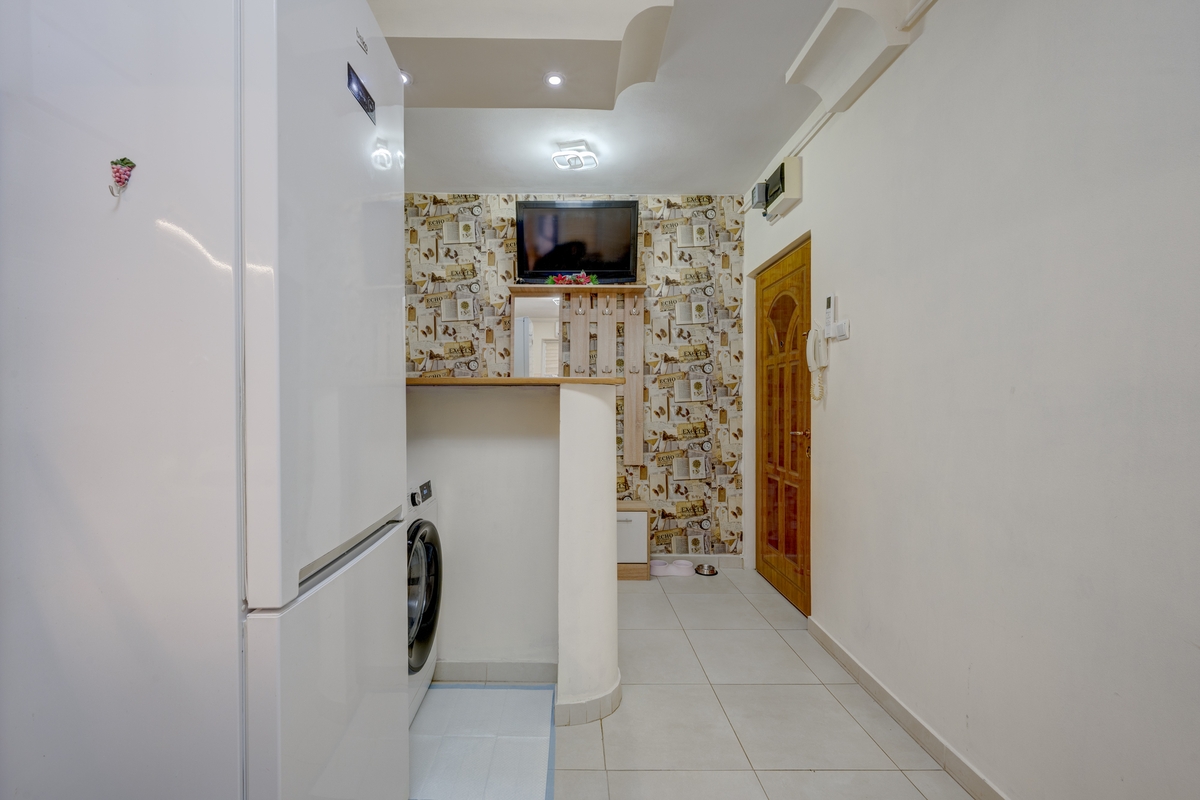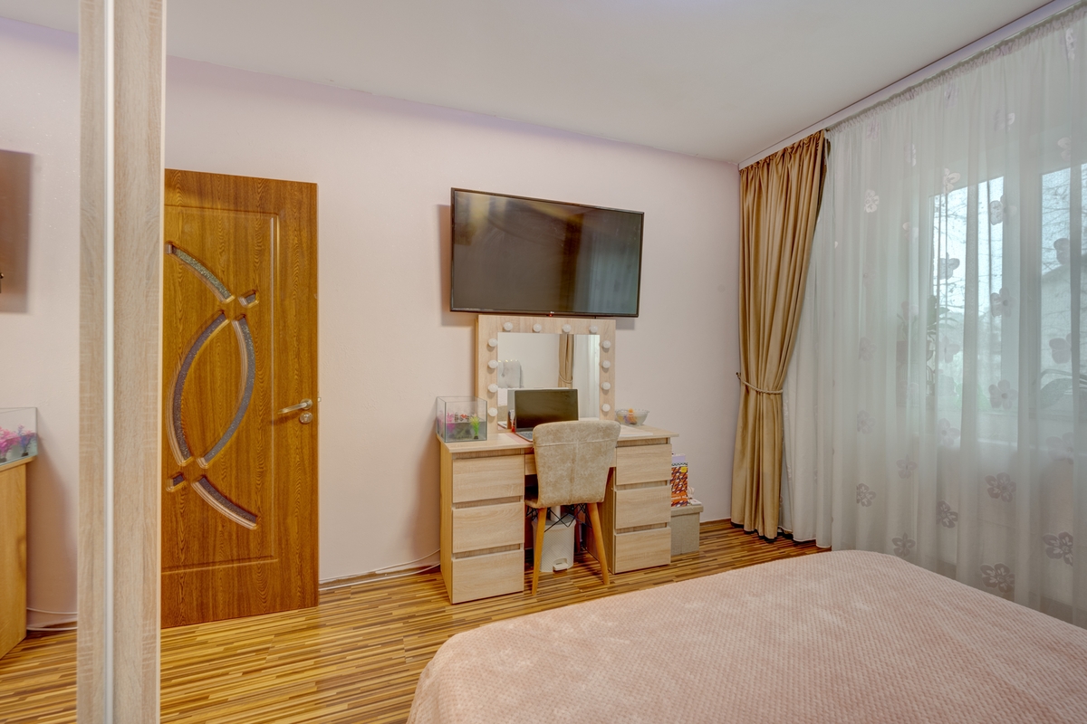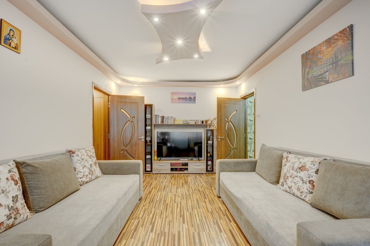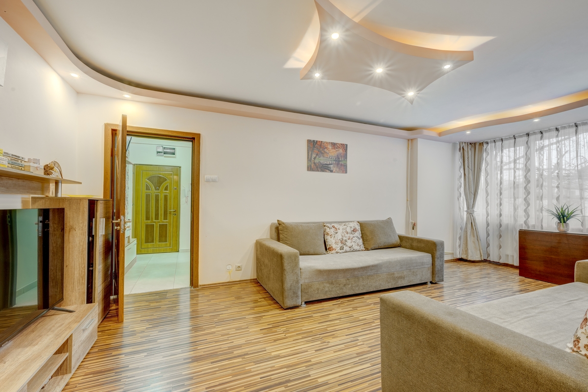 Apartamentul este situat intr-un imobil construit in anul 1971, este la etajul 4/4, are compartimentare semidecomandata cu o suprafata de 50,67 mp distribuita astfel: un hol la intrare, bucataria(9,5mp), living generos (20,5mp- livingul a fost extins spre balcon), un dormitor(12.43mp), 1 grup sanitar (3,64mp) si un hol langa baie in care s-a amenajat un dressing.