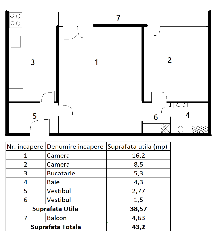 Optiuni interior: Aer conditionat Apometre Balcon Centrala termica Contor gaze Inst. electrice noi Inst. sanitare noi Renovat recent Termopan Usa metalica