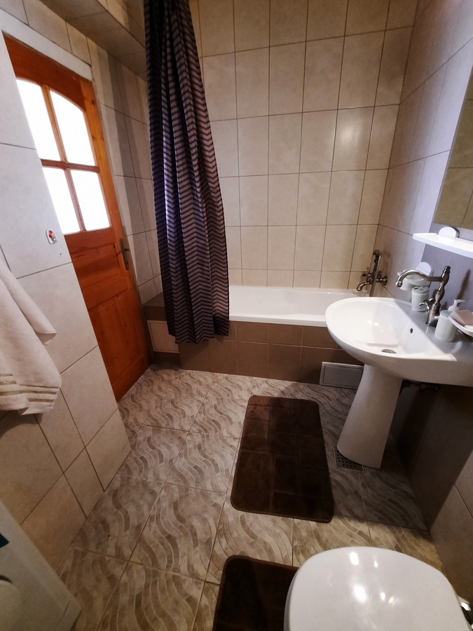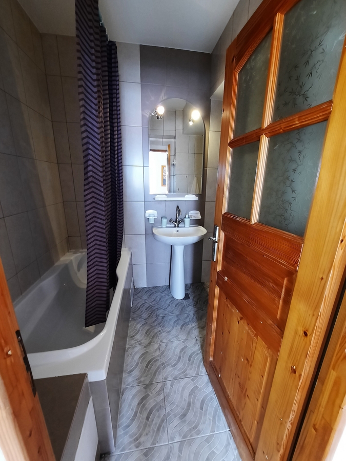 Finisaje si dotari: izolatie exterioara polistiren 10 cm, tamplarie exterioara PVC cu geam termopan, incalzire centrala termica Ferrolli si calorifere otel, pardoseli acoperite cu gresie si parchet laminat, aer conditionat, baie si bucatarie placate cu faianta import, masina de spalat, bucatarie functionala utilata: aragaz, frigider, hota precum si plase de insecte integrate la geamuri.