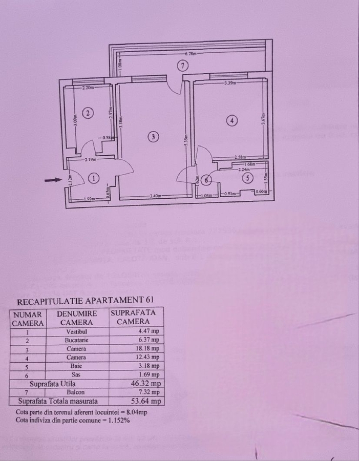 Optiuni interior: Apometre Balcon Debara Izolatie termica Termopan Usa metalica