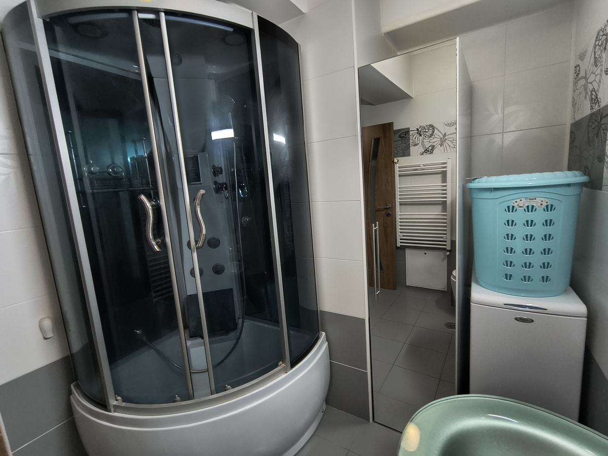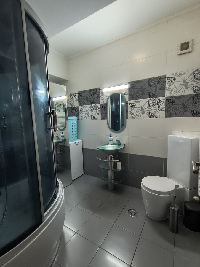 * *Baie spatioasa:* complet renovata, dotata cu obiecte sanitare moderne si finisaje de top;