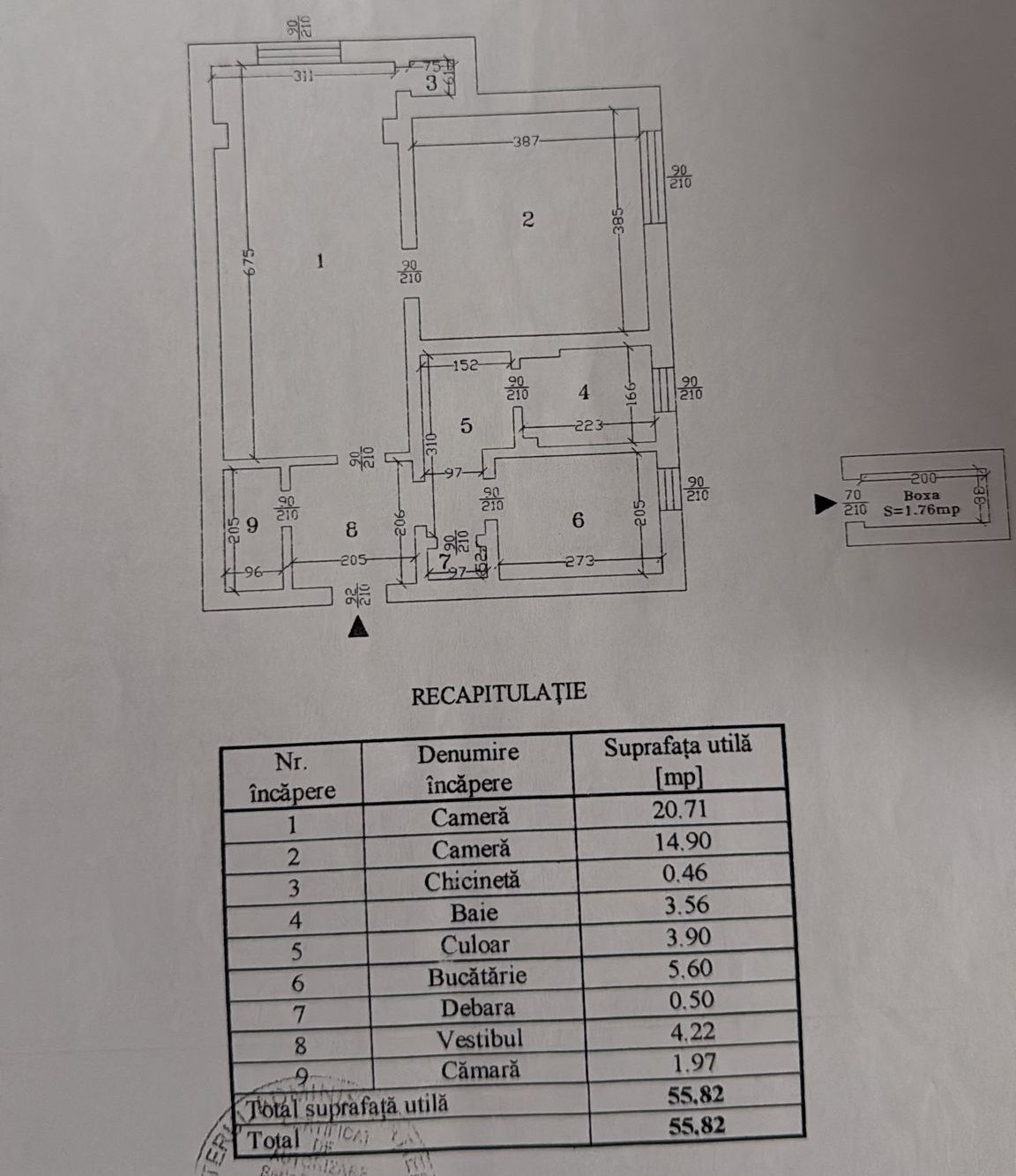 Apartamentul are o suprafata utila de 56 mp+ 1 boxa de 2 mp, 1 baie, are parchet masiv, gresie, faianta, termopan, centrala termica, aer conditionat, usa metalica.