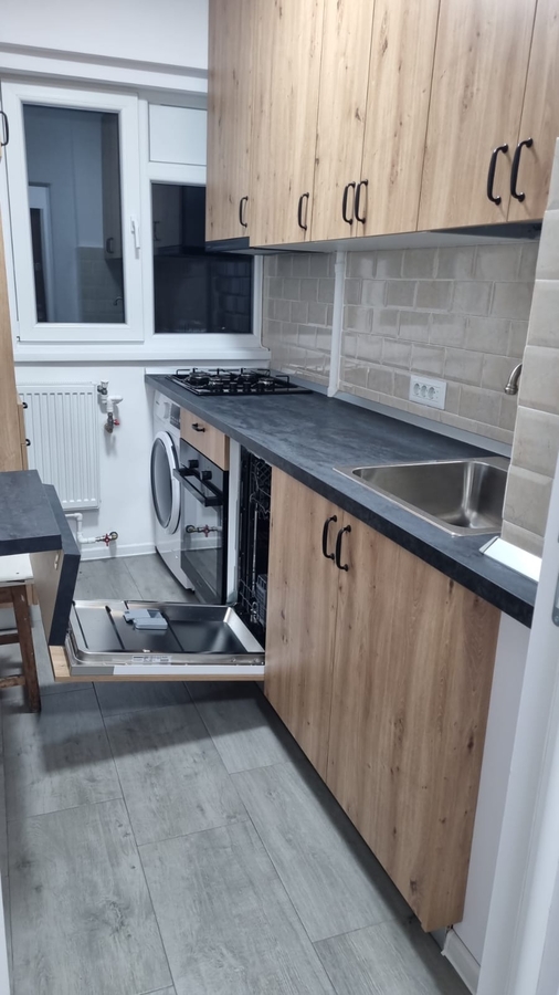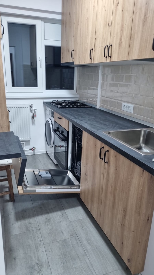2 camere confort 1 semidecomandat, mobilat nou, etaj 3/10, frigider, aragaz, masina de spalat vase, masina de spalat rufe, gresie, faianta, parchet, termopan, cadastru, intabulare, fara risc seismic