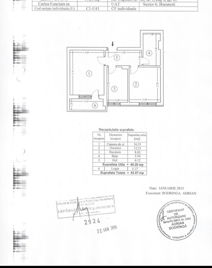 Va prezint spre vanzare apartament cu 2 camere, suprafata utila 54 mp, etaj 4 din 12, an constructie 2017