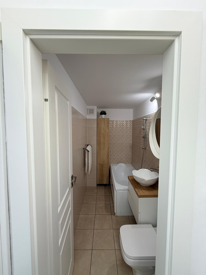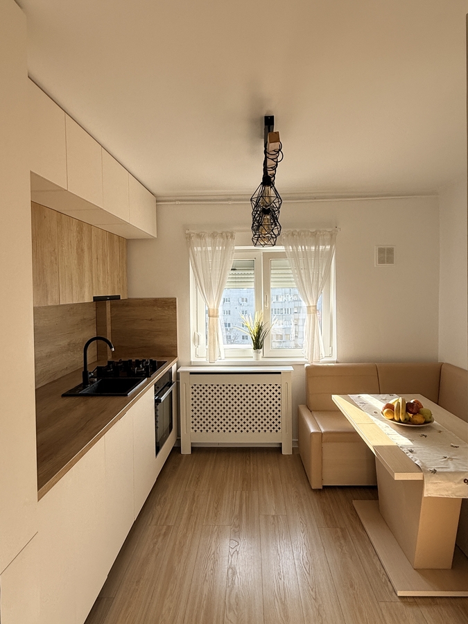Apartamentul a fost renovat complet in anul 2022. Dispune de usi Porta Doors, parchet Egger, usa metalica Porta Doors, calorifere din aluminiu. Instalatia electrica este refacuta complet, cu prize si intrerupatoare Gewiss gama Chorus, tablou electric si sigurante Schneider. Mobilierul este realizat pe comanda din PAL Egger. Instalatia sanitara este refacuta integral. Apartamentul dispune de rulouri exterioare din aluminiu.