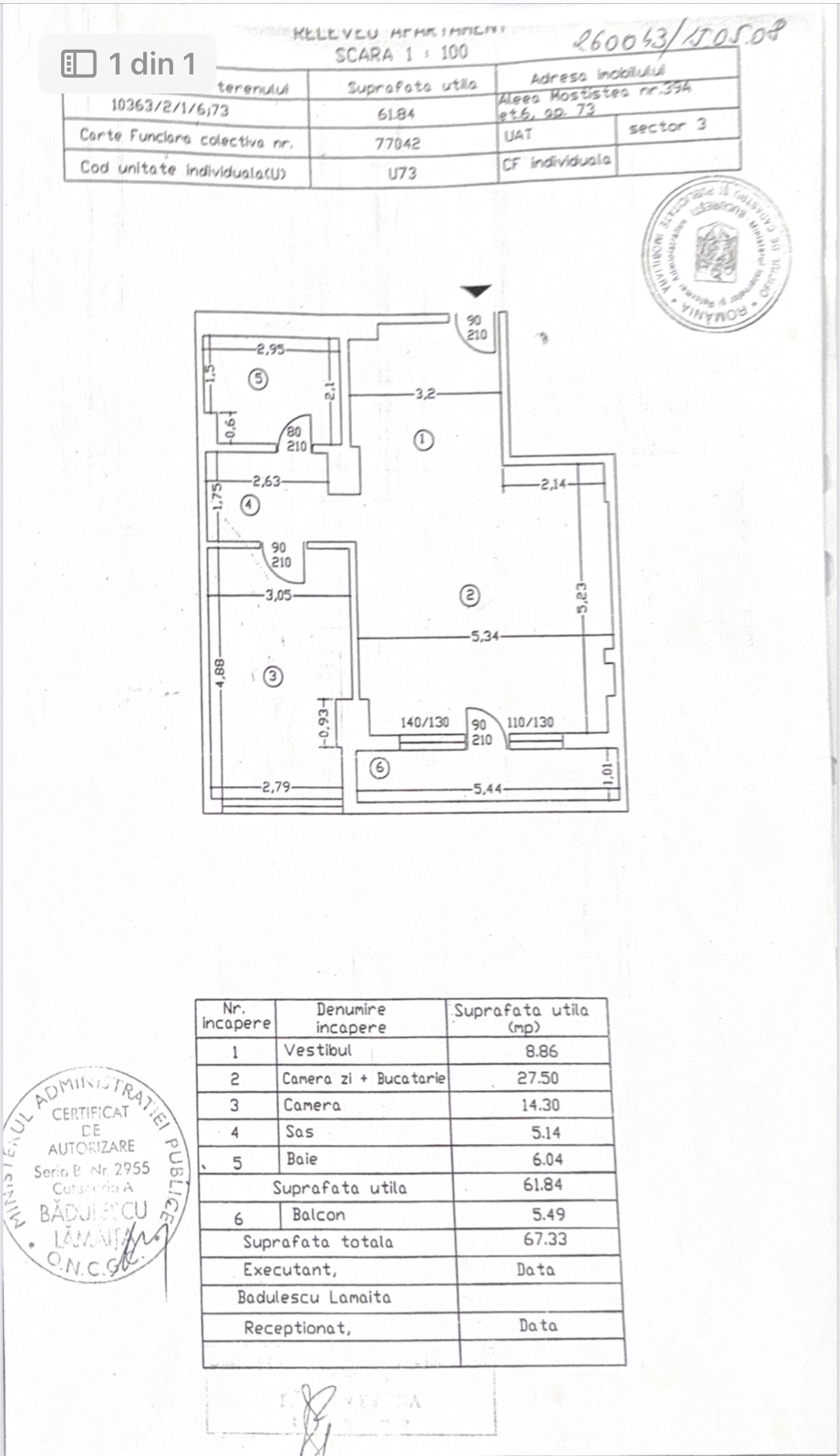 particular, vand apartament mare complet mobilat si utilat, gata de mutare, pe Str. Aleea Mostistea nr. 39A, etajul 6/6, la cativa pasi de metrou Nicolae Grigorescu. Suprafata utila 61,84 m² + balcon 5,49 m², total 67,33 m². Compartimentare practica: vestibul 8,86 m², living cu bucatarie 27,5 m², dormitor 14,3 m², hol 5,14 m², baie 6,04 m². Centrala proprie, constructie 2009. Posibilitate inchiriere, loc parcare subteran. Zona cu toate facilitatile aproape. Ideal pentru mutare imediata sau investitie sigura, cu potential maxim de inchiriere. 134500 euro, pret negociabil particular.