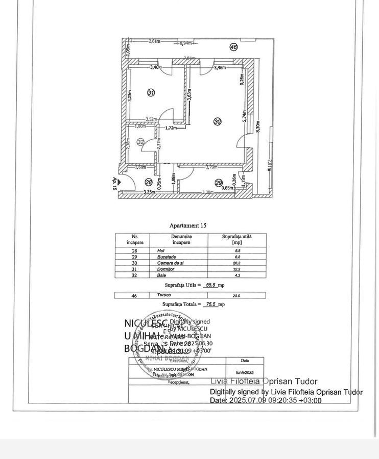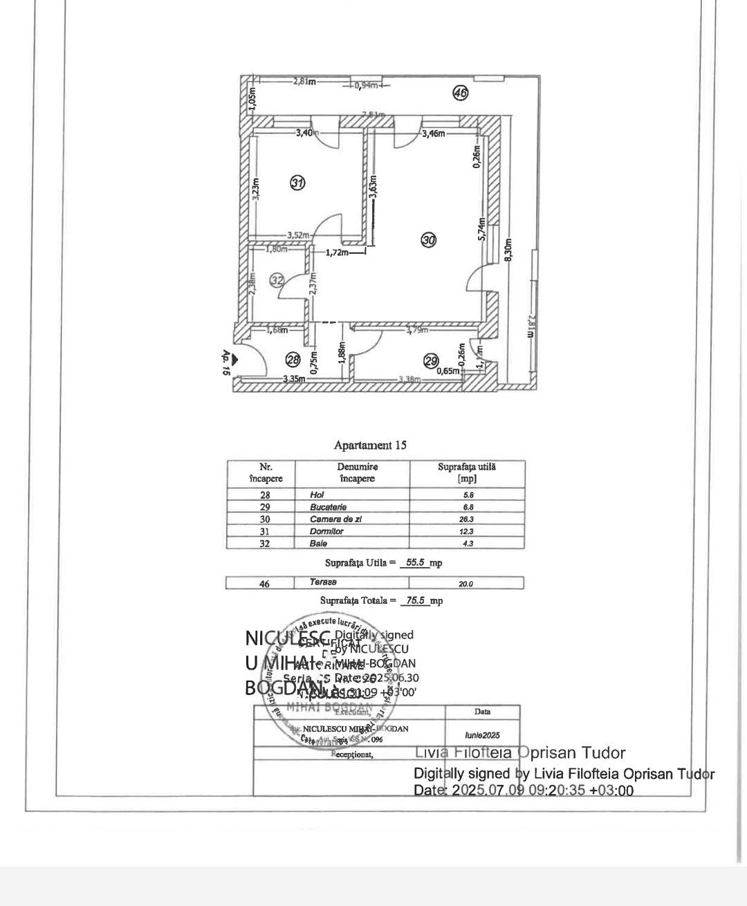 Constr. 2025, ap. 2 camere etaj 2/3, decomandat, sup 75 mp total, 55 utili.
