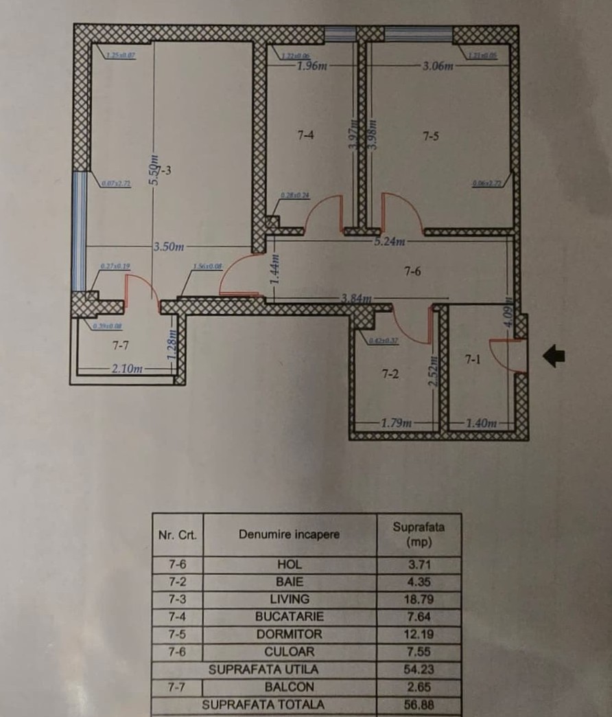 • Suprafata apartament: 54.23 mp utili (+ balcon de 2,65 mp).