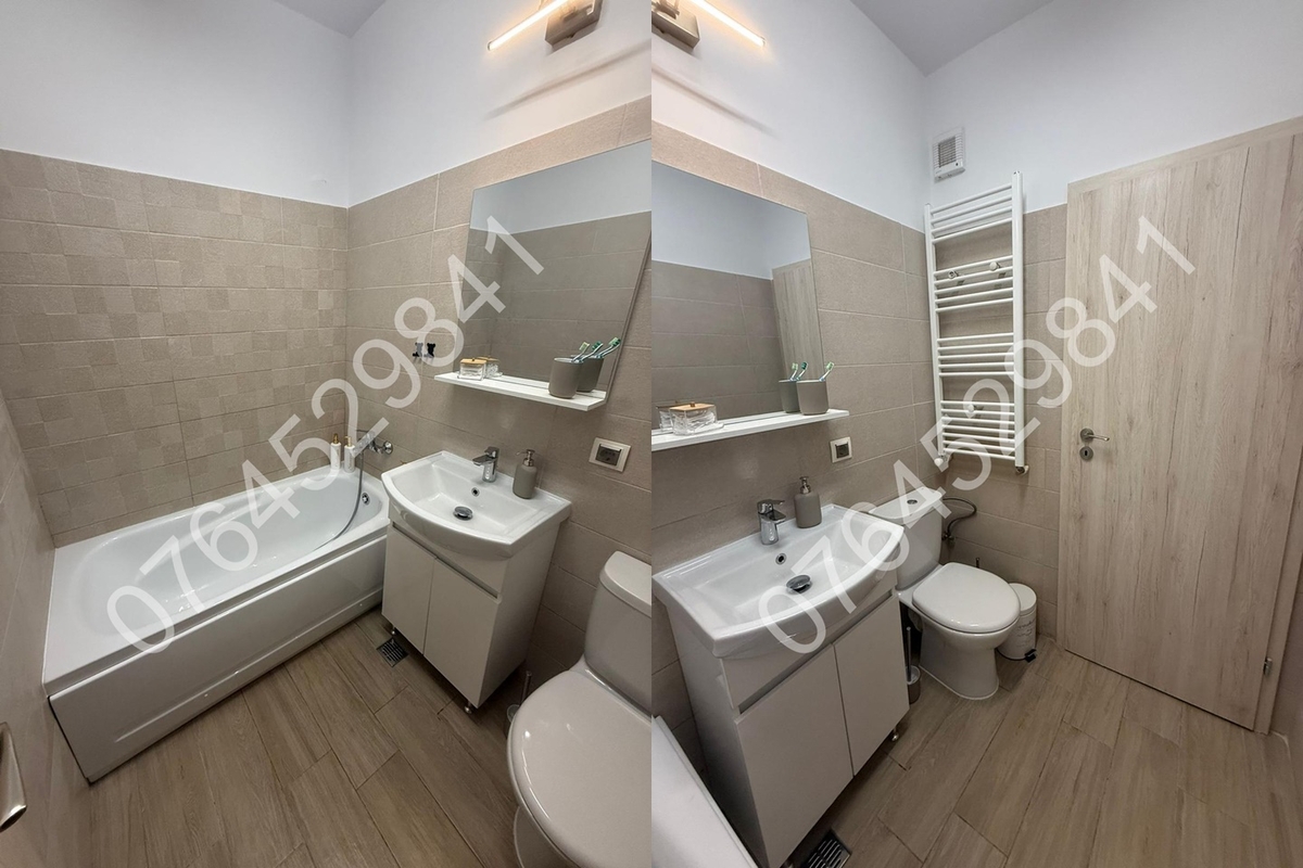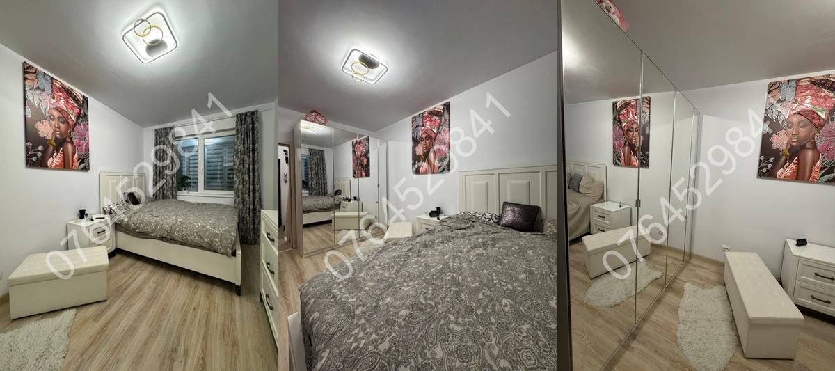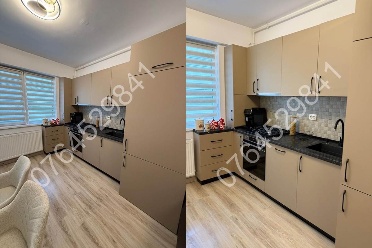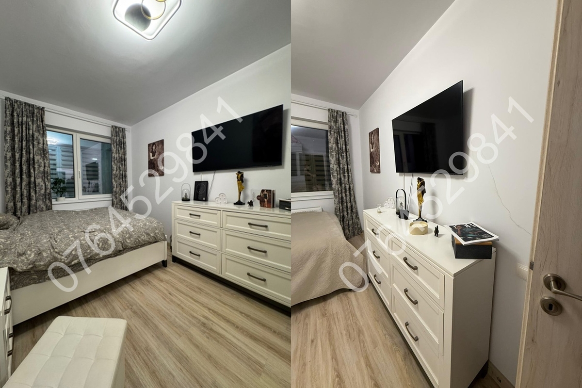 Balcon inchis in termopan,centrala termica (pe gaz) de apartament+termostat ambiental,aer conditionat,2 televizoare Samsung smart,canapea extensibila tip coltar in living, pat matrimonial+dressing generos in dormitor,spatii depozitare,plita pe gaz+cuptor electric+hota+combina frigorifica incorporate,masina de spalat rufe Beko.