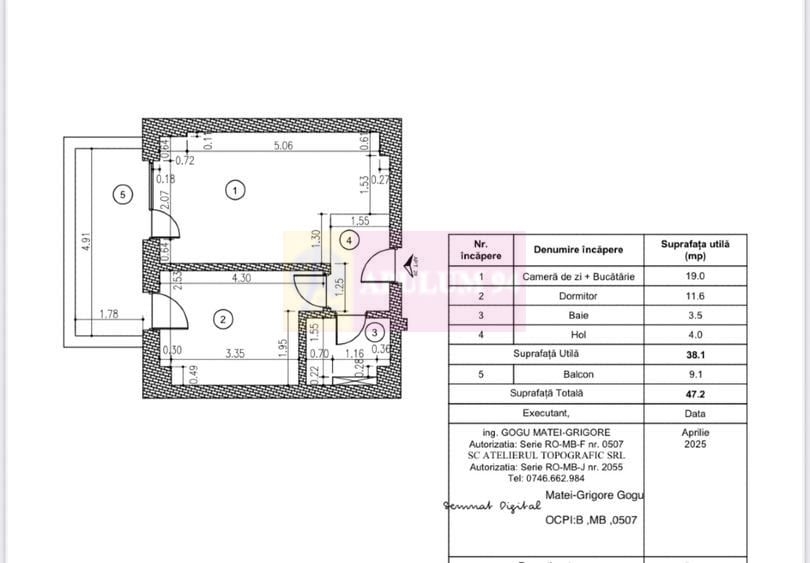 Suprafata utila este de 38.10 mp.