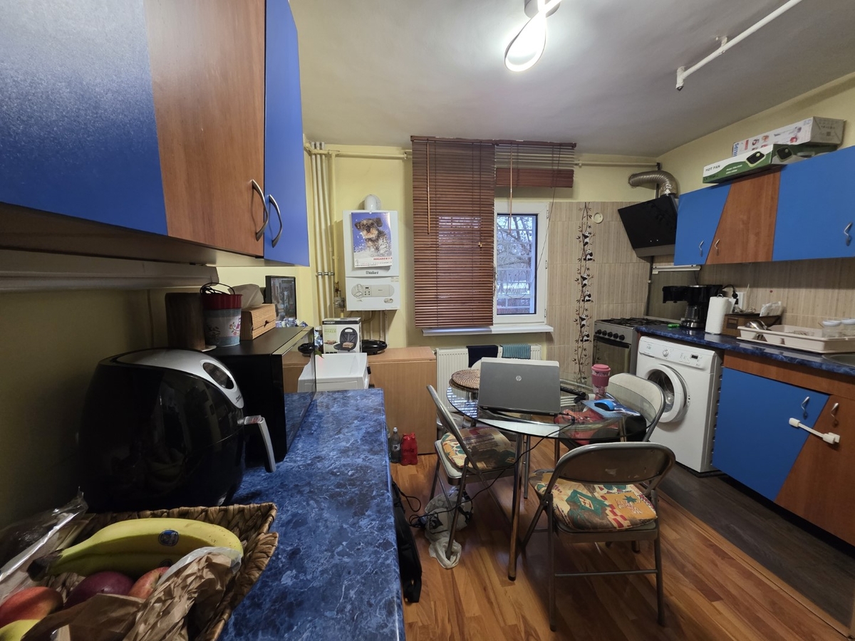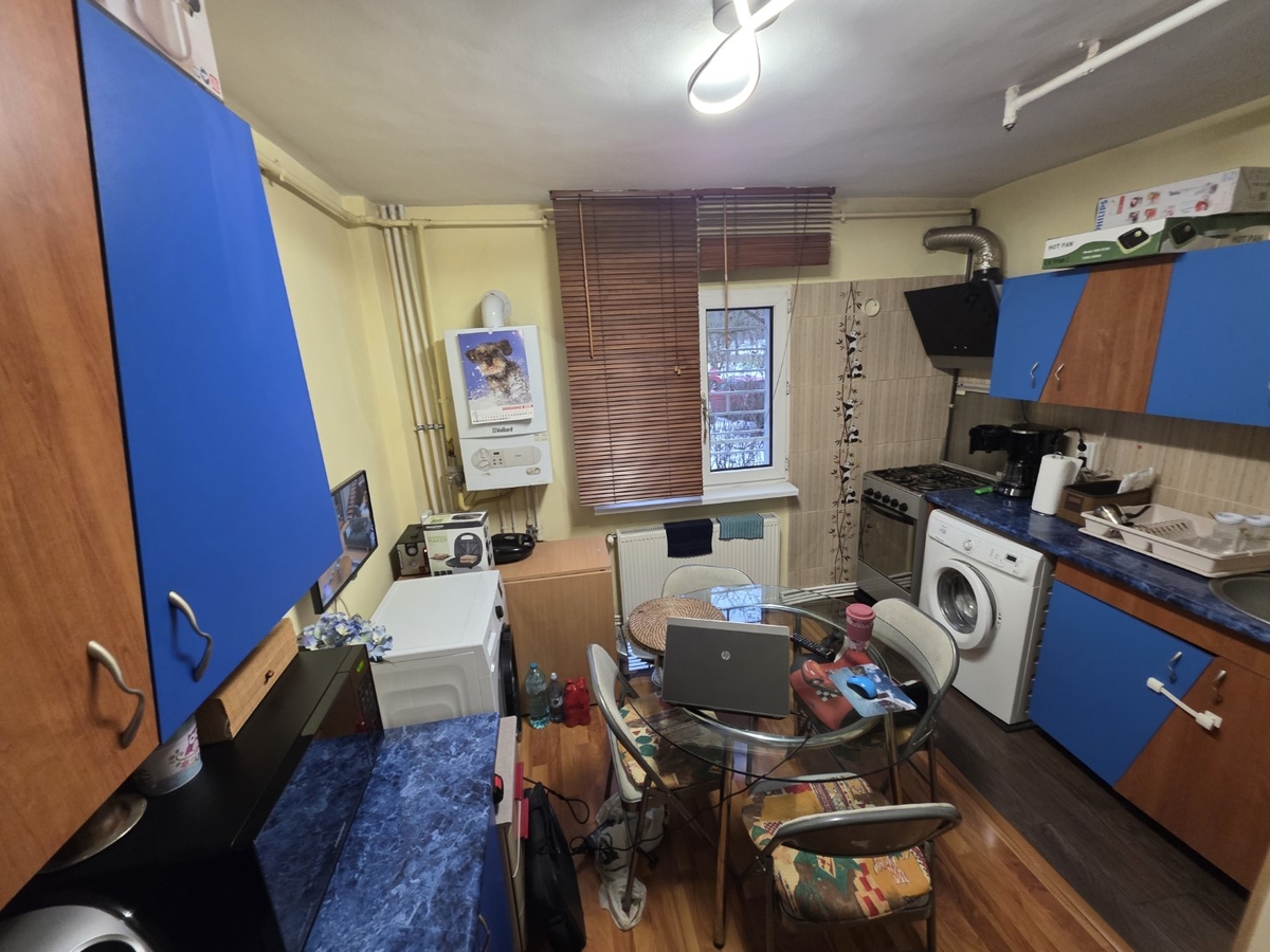 Apartamentul este decomandat, partial mobilat si utilat, are gresie, faianta, parchet, termopane. usa metalica, instalatiile electrice si sanitare schimbate si o bucatarie mare.