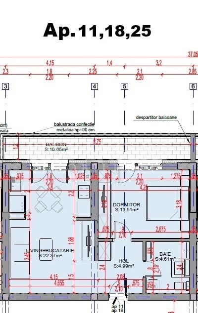 Suprafata utila - 45.48 mp utili +10.65 mp balcon, suprafata totala utila 56.13 mp utili
