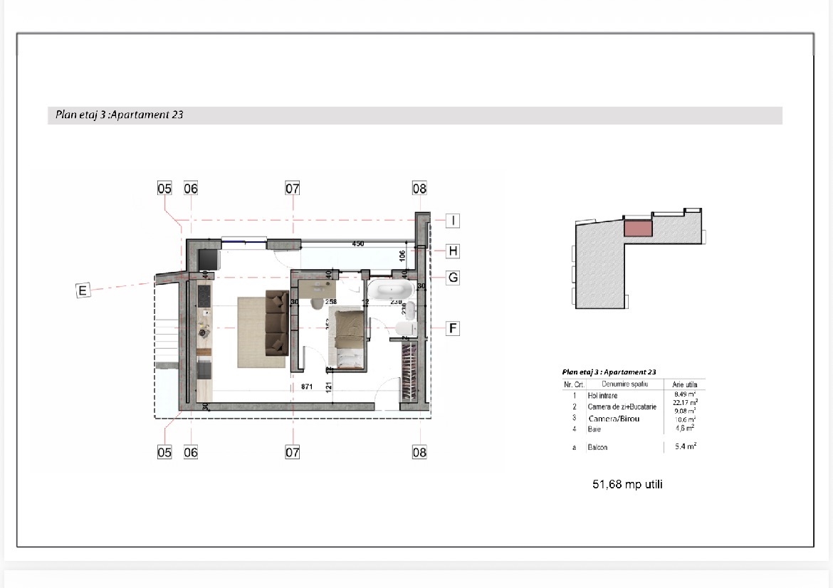 2 Camere Cu un regim de inaltime P+ 3, si o suprafata utila aprox de 52 mp, apartamentul se preda la stadiul de finisat, cu baia utilata. Blocul dispune de structura de rezistenta din beton si caramida, cu finisaje de o calitate superioara, incalzirea spatiului se realizeaza prin pardoseala, cu centrala proprie, geamuri tripan, cu spatii vitrate mari pentru a beneficia de cat mai multa lumina naturala. Zona este foarte linistita, de case si vile, blocuri cu regim mic de inaltime, ceea ce o face ideala proprietatea pentru locuinta, dar si investitional.