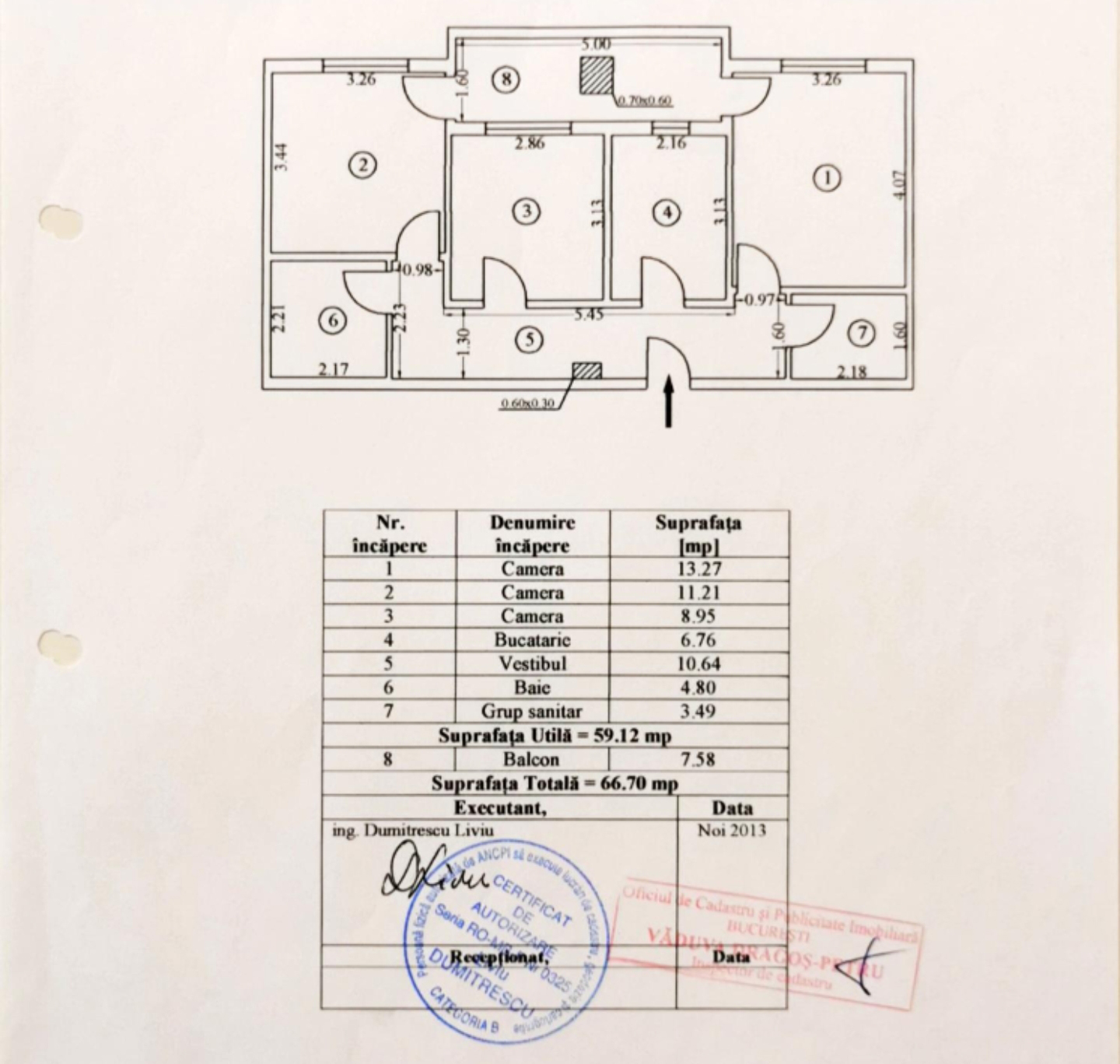 - suprafata utila: 59,12 mp | Suprafata totala: 66.70 mp