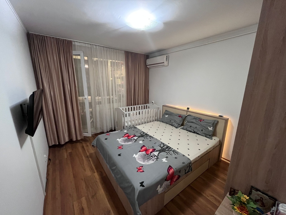 renovat in totalitate: parchet, gresie, faianta, geamuri termopan, instalatii electrice noi, usa metalica, 2 aparate de aer conditionat, se vinde complet mobilat si utilat,