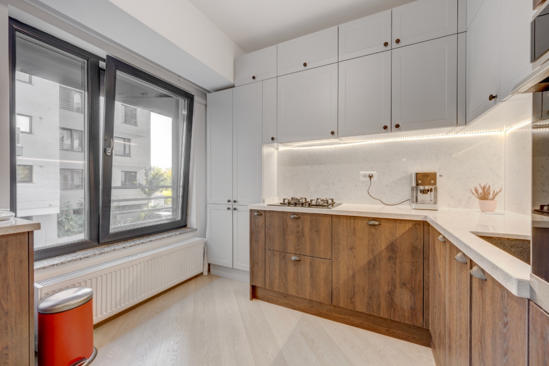 • Bucataria este amenajata cu mobilier de calitate, cu blat si chiuveta de granit.