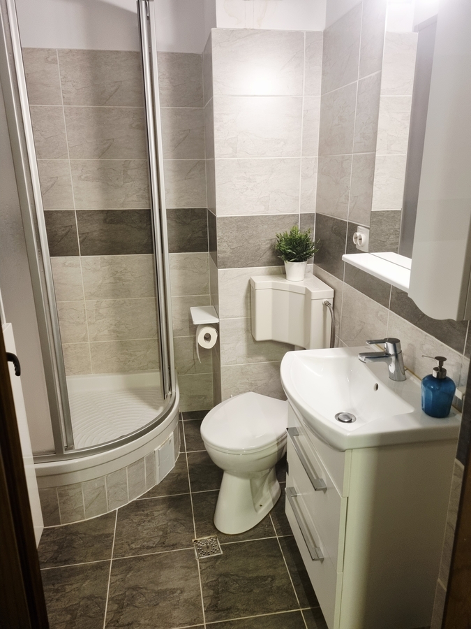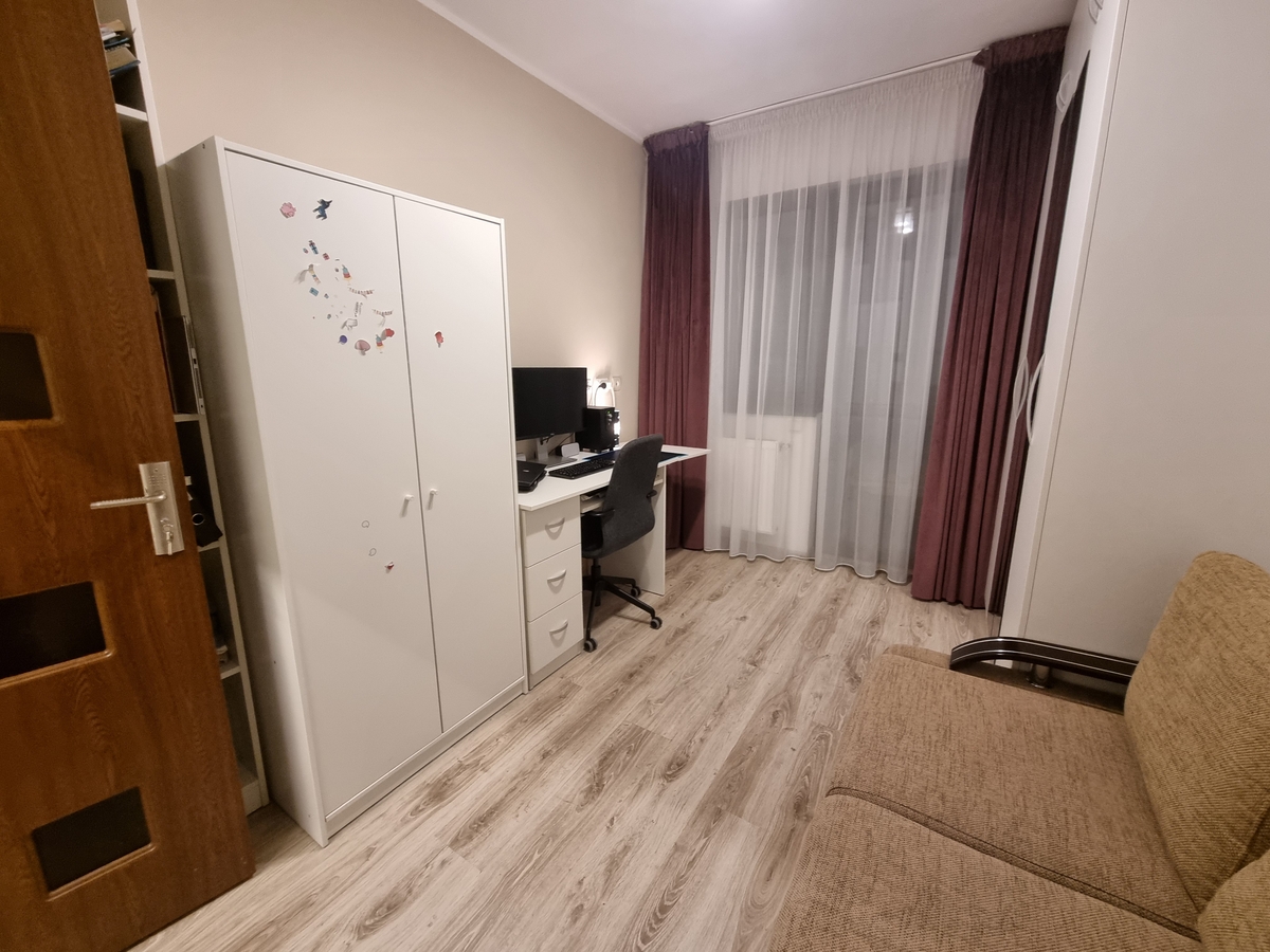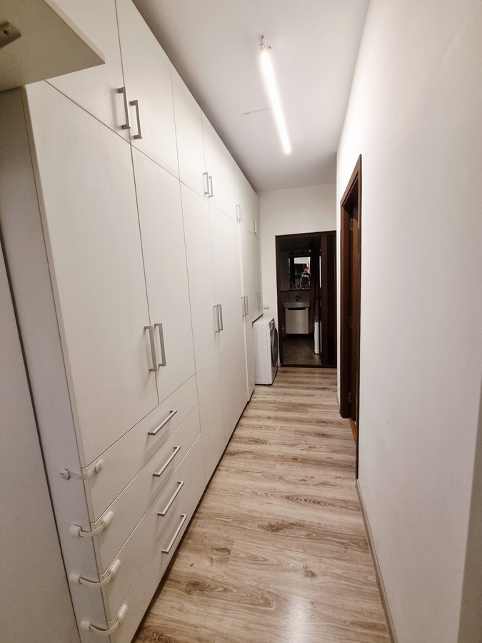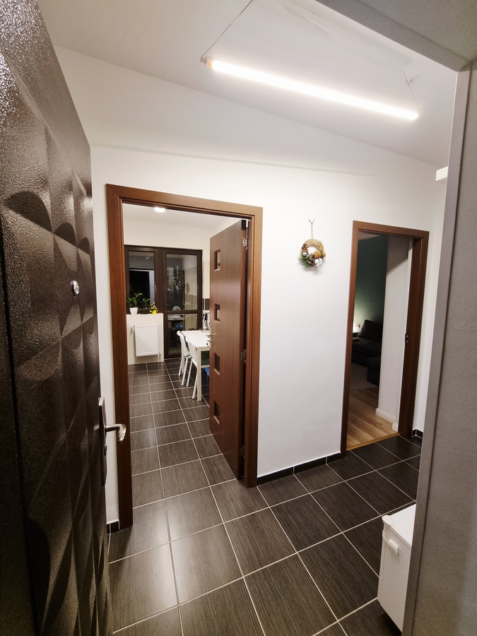 A fost achizitionat in timpul constructiei si are o compartimentare imbunatatita fata de standardul dezvoltatorului si celelalte apartamente din complex: holul este mai lat pentru depozitare, bucataria este mai lata si are mai mult loc intre masa si blat, grupul sanitar a fost marit si a permis instalarea unui dus suplimentar.