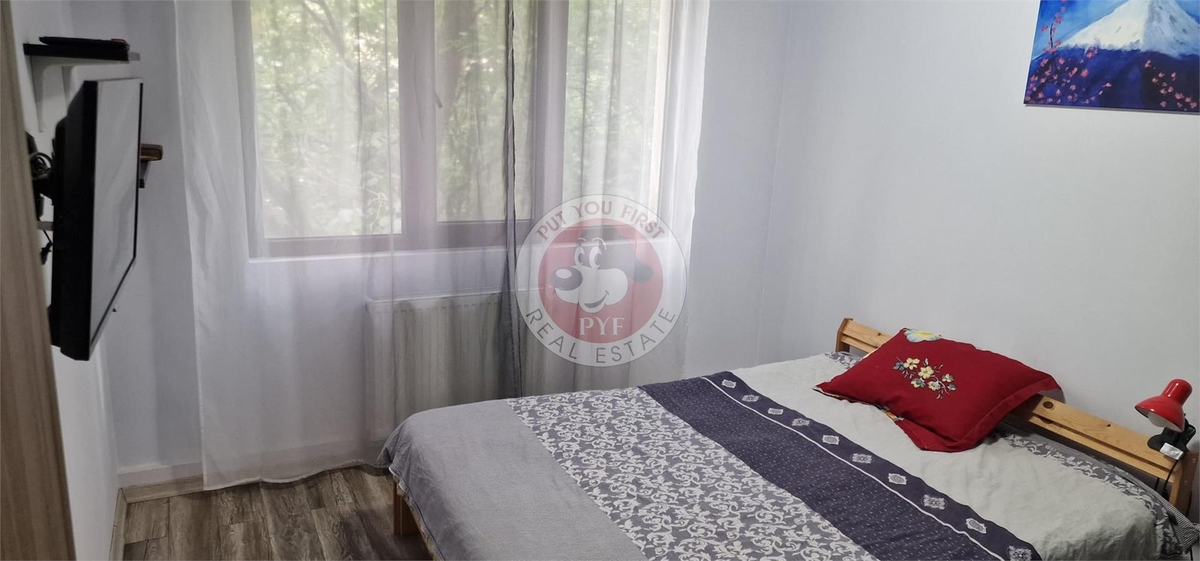 Mobilare : mobilat si utilat complet, paturi, canapea, aragaz, frigider, TV, AC, masina de spala rufe, cuptor microunde, hota, drressing.