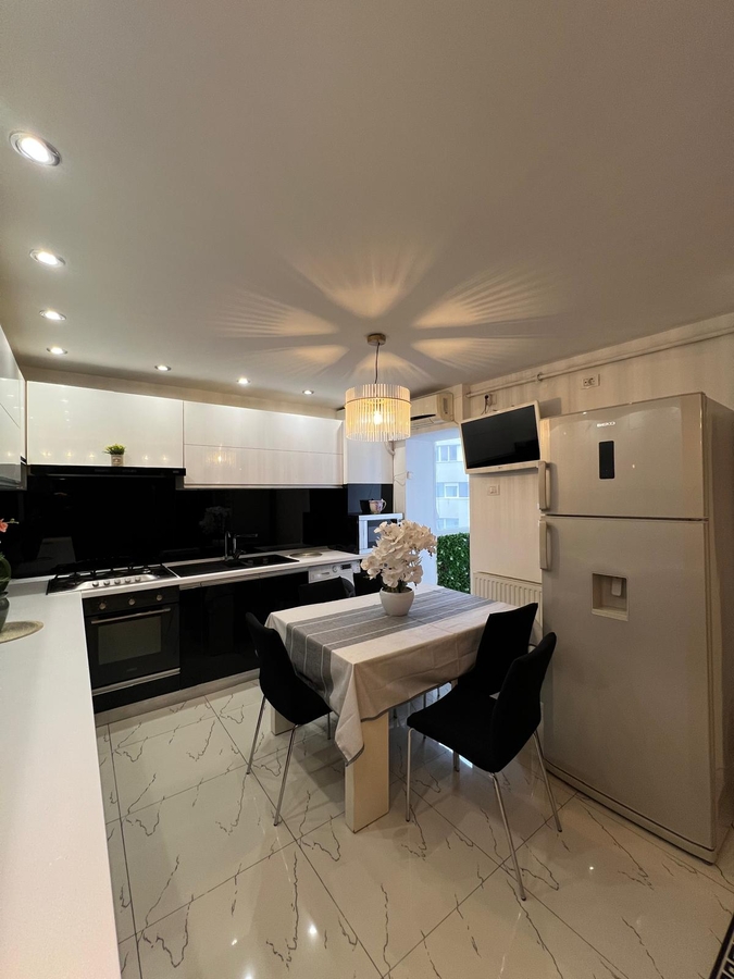 Apartamentul a fost renovat in urma cu 8 ani, cu materiale si finisaje de calitate superioara. Instalatiile sunt refacute complet, dispune de centrala termica proprie, aer conditionat si usi schimbate. Se vinde conform fotografiilor, mobilat si utilat cu electrocasnice premium.