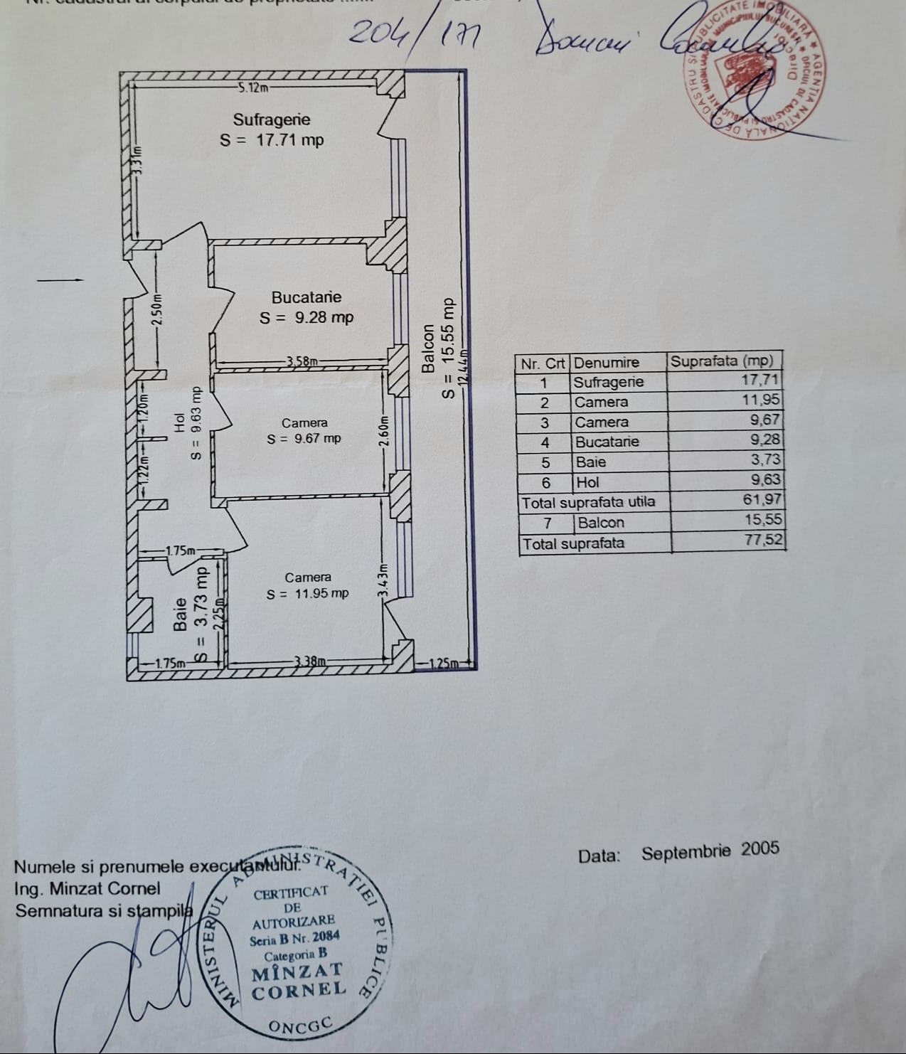 Optiuni interior: Apometre Balcon Debara Inst. sanitare noi Izolatie termica Repartitoare caldura Termopan Usa metalica