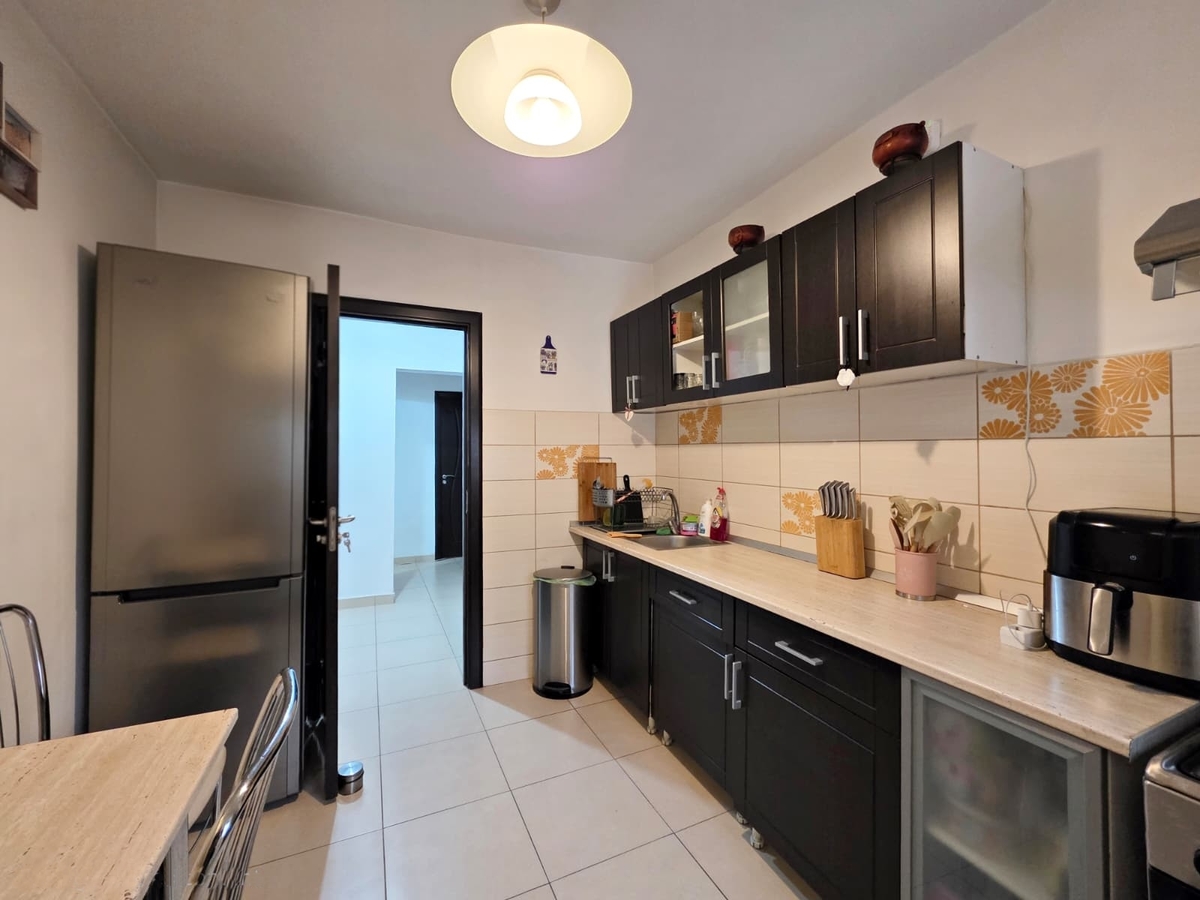 Bucataria de peste 8 mp este prevazuta cu o camara de 1,85 mp, numai buna pentru conserve si cumparaturi saptamanale.