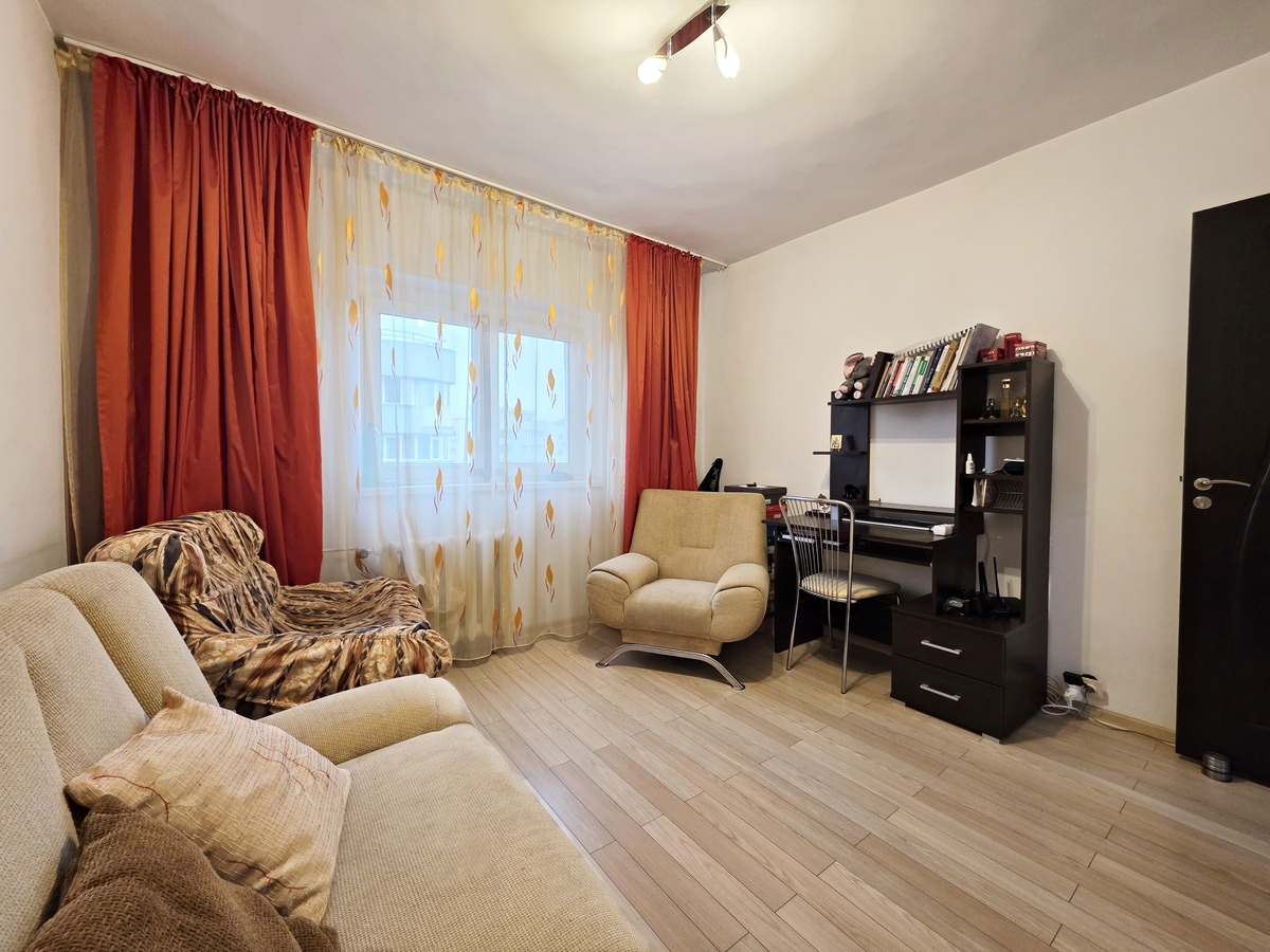 Aceasta proprietate cu trei camere ofera un spatiu util generos (73,03 mp), completat de un balcon de 4,36 mp. Apartamentul a beneficiat de renovari esentiale la inceputul anilor 2000, este curat, ingrijit si locuibil imediat, dar cu singuranta viitorii proprietari vor alege sa il reamenajeze.