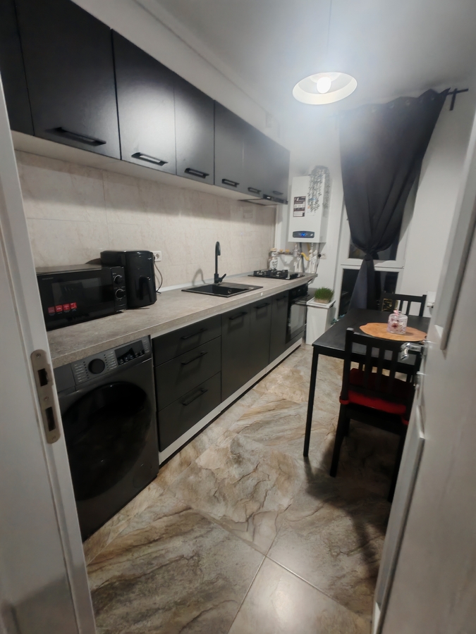 *Bucatarie: mobila de 3,5 m, plita+cuptor incorporabil, masina spalat, combina frigorifica.