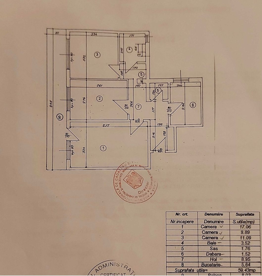 Optiuni interior: Aer conditionat Apometre Balcon Debara Izolatie termica Repartitoare caldura Termopan Usa metalica